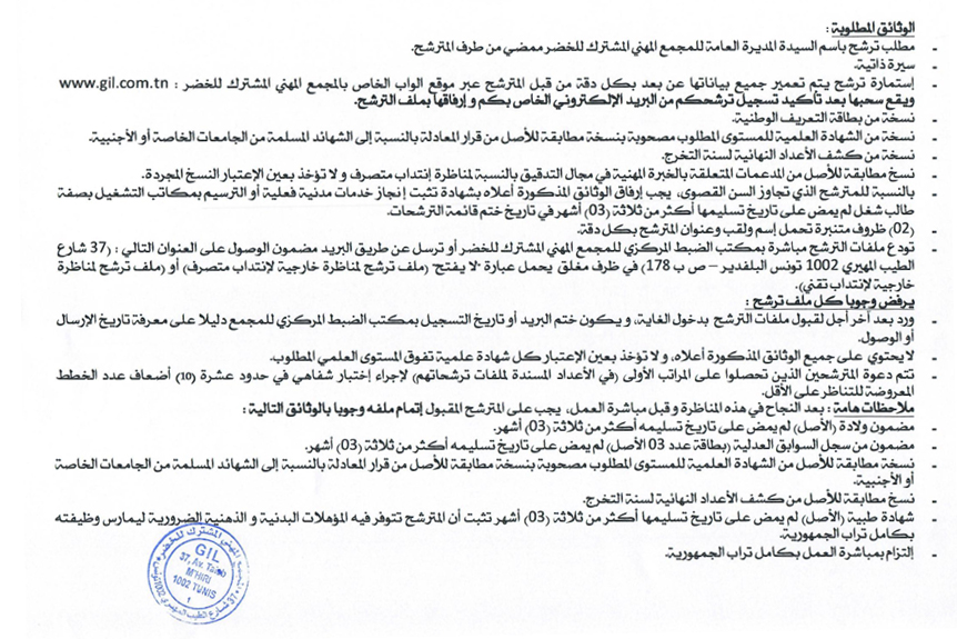 لمشاركة يتم تعمير إستمارة الترشح عن بعد بكل دقة وسحبها عبر الرابط المرفق ثم يتم إيداعها مرفوقة ببقية الوثائق المطلوبة مباشرة بمكتب الضبط المركزي للمجمع المهني المشترك للخضر أو إرسالها عن طريق البريد مضمون الوصول على العنوان التالي: