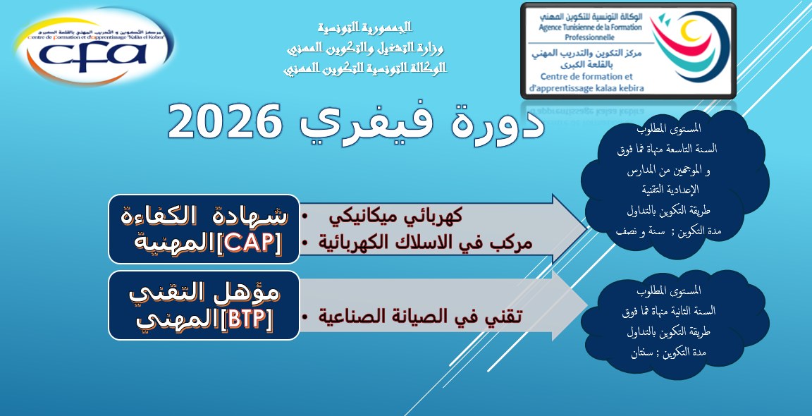 مركز التكوين والتدريب المهني بالقلعة الكبرى : دورة فيفري 2026
