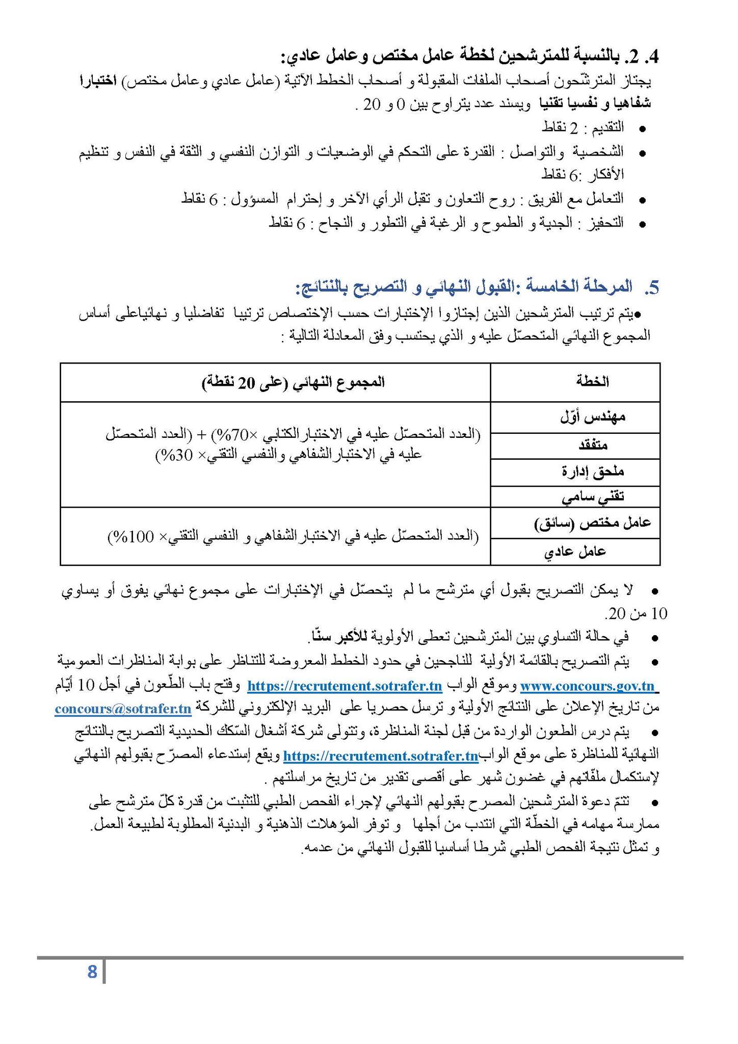 - (01 خطة) تقني سامي اختصاص الكهرباء (هندسة كهربائية أو صيانة الميكاترونيك، أو الآلية والإعلامية الصناعية)