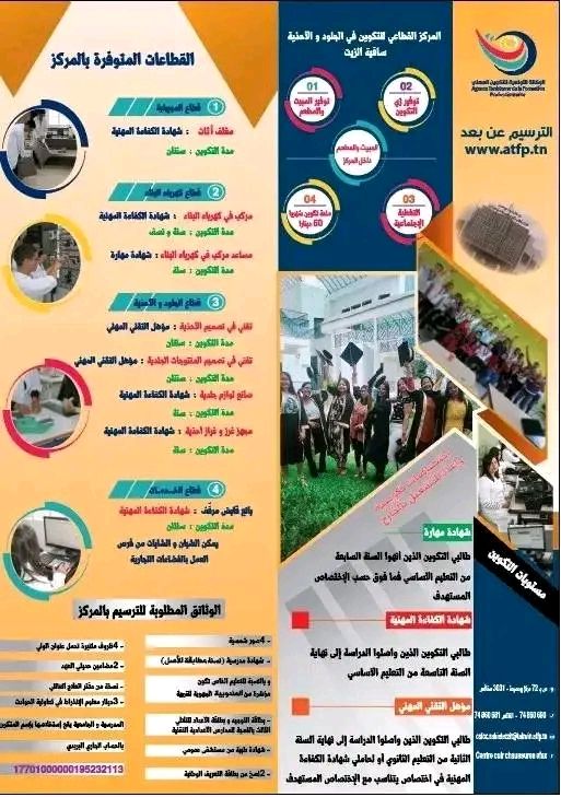 للمشاركة في هذه الدورة يمكن التسجيل على مواقع واب الوكالة التونسية للتكوين المهني عبر الرابط المرفق.