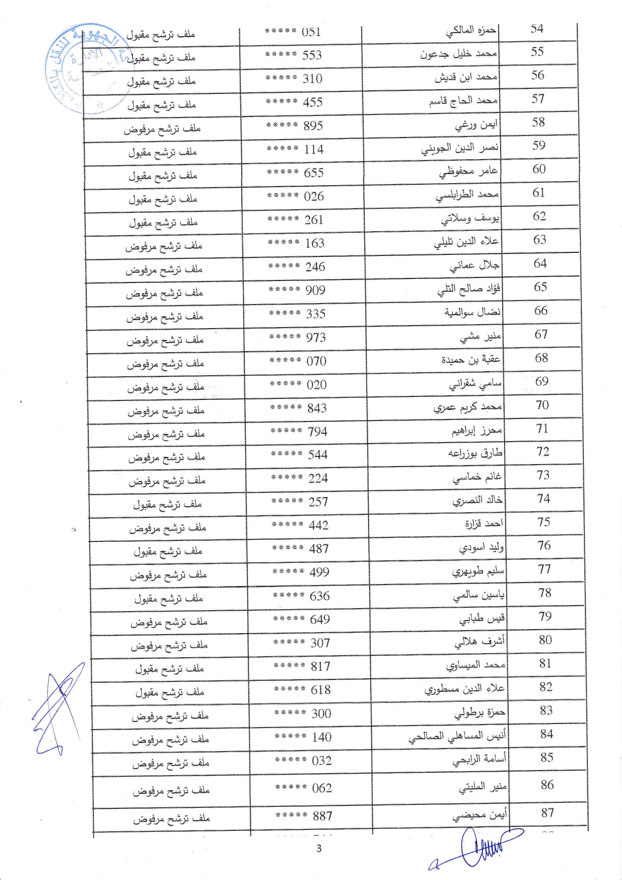 يمكن الإطلاع على القائمات الإسمية للمقبولين وللمرفوضين بالوثائق المرفقة.